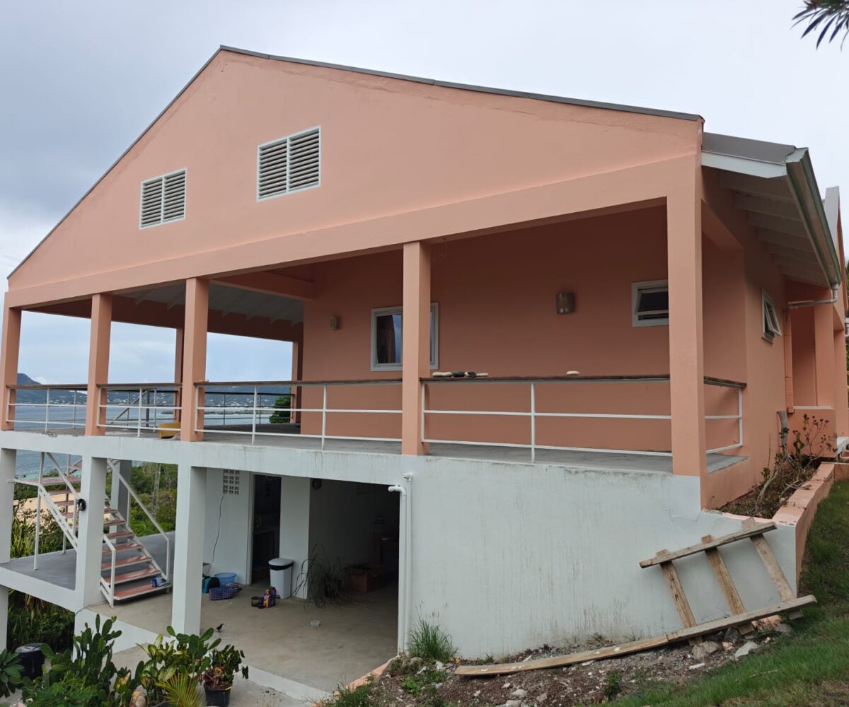 Spacious island residence set on 12,409 sq. ft. of land with a 4,113 sq. ft. building, located in the desirable community of St. Louis, Lester, Carriacou. The upper floor features 2 bedrooms and 2 bathrooms, while the lower level offers a private studio bedroom, ideal for guests or rental potential.